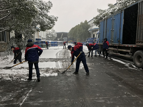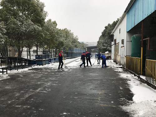 1月24日下午3時(shí)起蕪湖地區(qū)普降大雪,25日清晨到處布滿了積雪。早晨8點(diǎn)不到,公司組織人員清理廠區(qū)內(nèi)人主干道積雪,保障生產(chǎn)經(jīng)營。